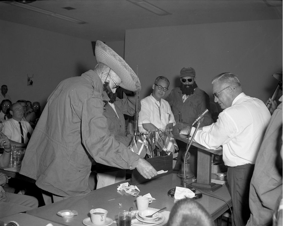 In 1952, the International Convention was once again held in Mexico City. This time, the club could afford to send the current President, Oscar Finch. Oscar wanted to increase attendance at meetings and found a creative way to do it. He brought in a little pig as a pawn. Anyone who missed two meetings had to keep the pig until another member missed. Attendance immediately improved, but poor Joe Allen got stuck with the pig so long he was worried he’d never get rid of it.