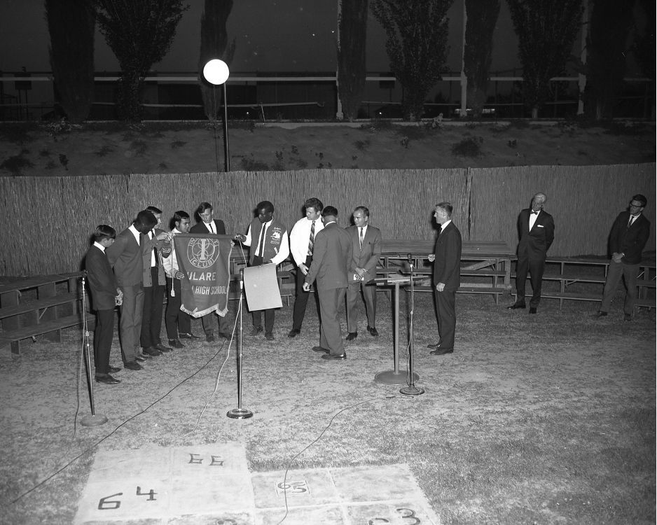 During that time, inter-city meetings were held periodically and included clubs from Fresno, Bakersfield, and Visalia. At one such meeting in Visalia, Tulare Rotary Club President, Dr. Bob Young, was presiding and the members of the Visalia club set out to take the meeting away.